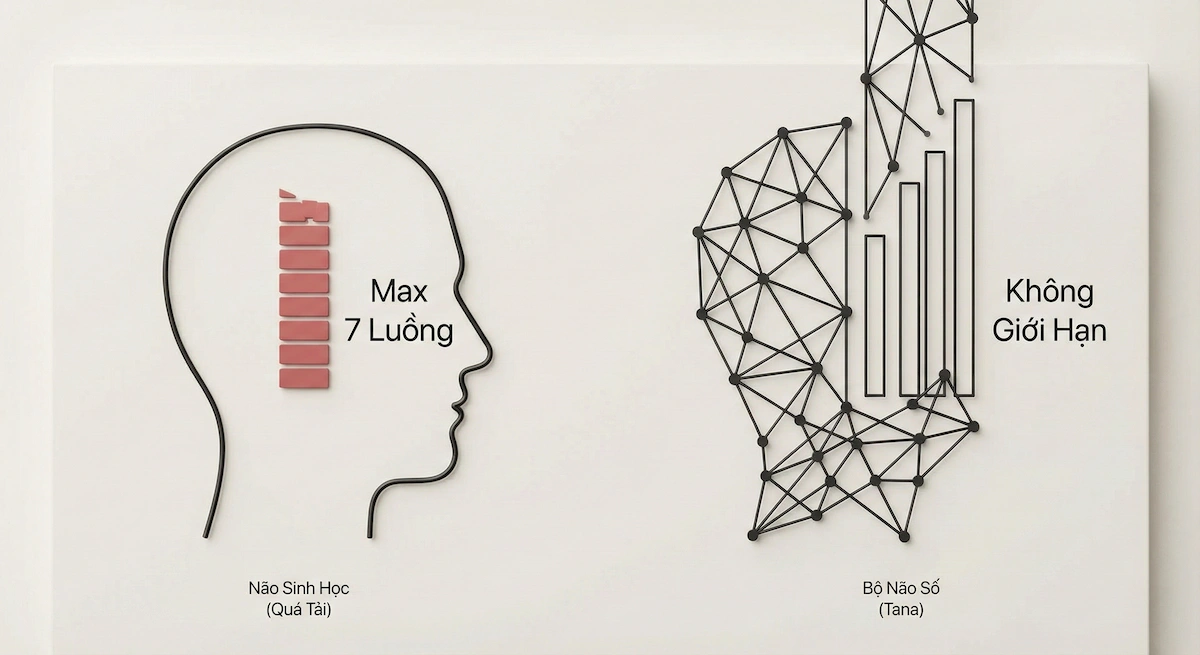 Bộ Não Số ra đời không phải để bạn làm việc nhiều hơn. Nó ra đời để gánh vác sự ồn ào, giúp não sinh học của bạn được phép Quên, để rồi được Sống trọn vẹn trong hiện tại.